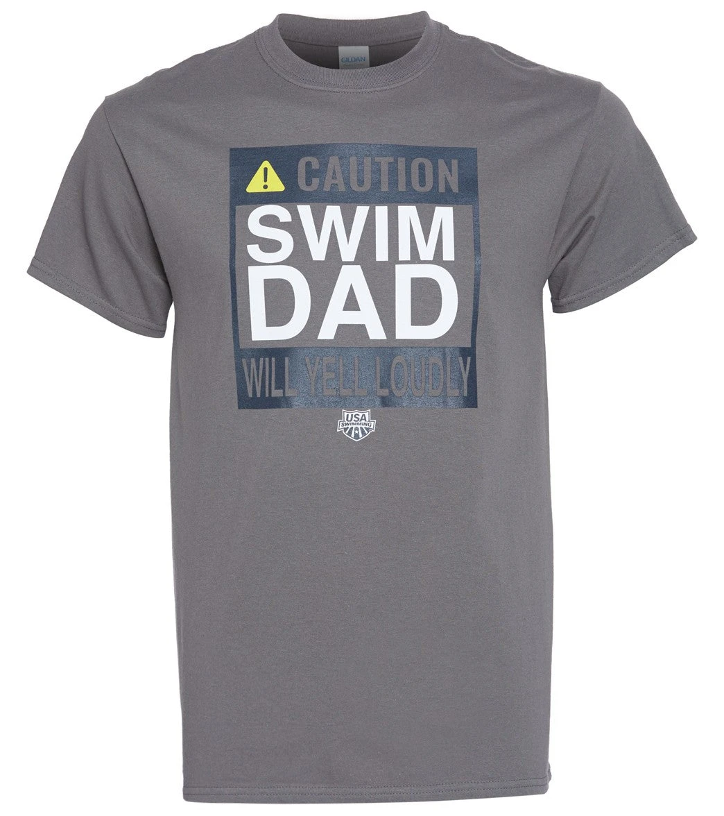 Swim dads don’t play with the USA Swimming Men’s Swim Dad Caution C-Neck T-Shirt.