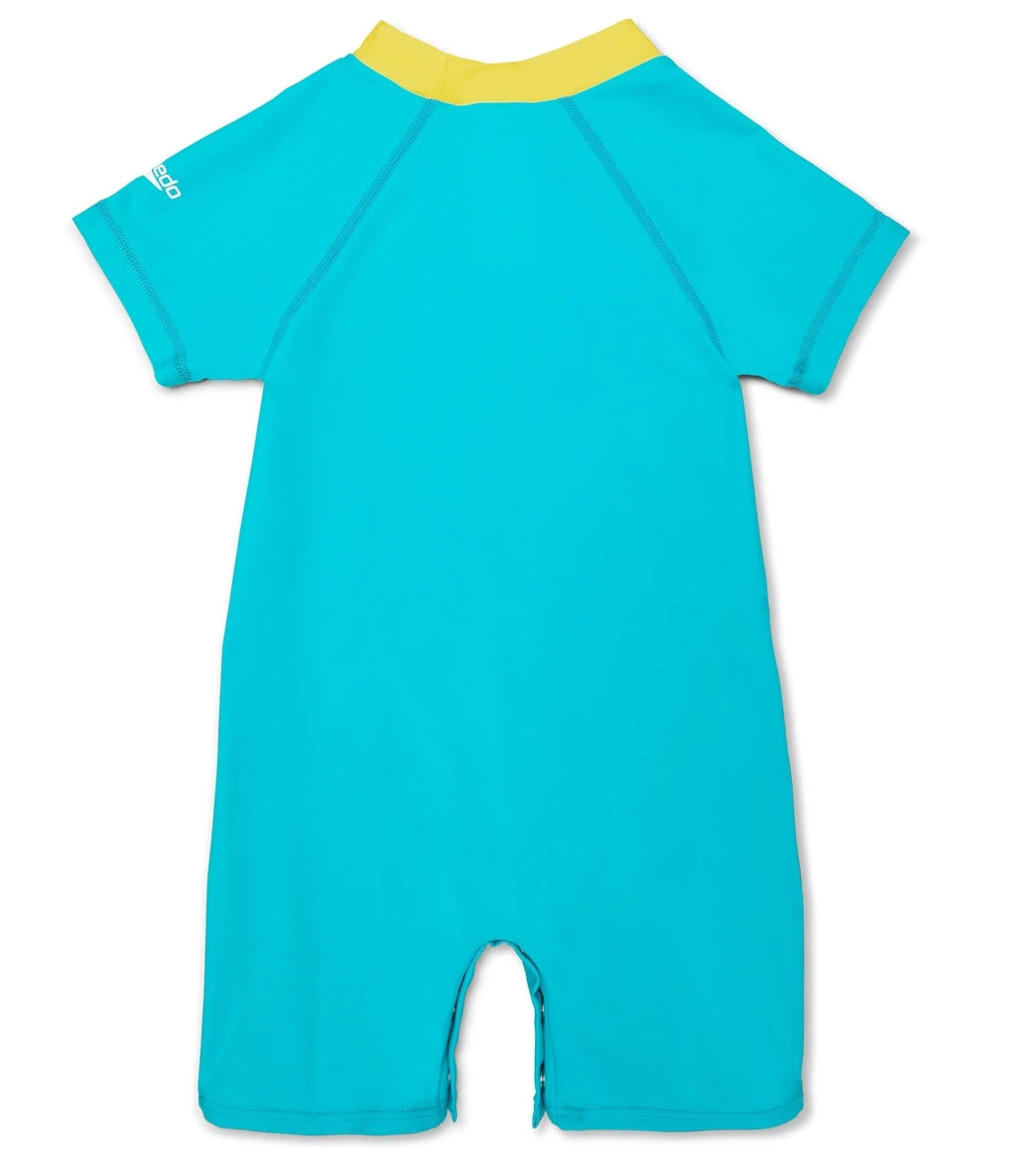 Teach your little one to swim with the Speedo Begin to Swim Toddler Unisex Sun Suit. Features a cute graphic and snap closure bottom. Made from chlorine-resistant fabric with Block the Burn UPF 50+ built in, the suit is a durable essential that also offers protection.